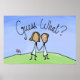 Perfekt, um eine Verlobung, Hochzeit oder Verpflichtungsfeier mit Ihrem Partner anzukündigen. Dieses Design zeichnet sich durch ein niedliches und süßes Bild eines lesbischen Ehepaares aus, das den Text "raten Sie was" in Händen hält.