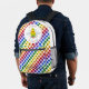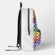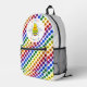 Dieser phantastische Rucksack ist mit einem regenbogenfarbenen Grafikbild einer Biene ausgestattet. Die Biene hat einen gelben Körper mit schwarzen Augen, Beinen und Antennen und 5 Streifen auf ihrem Bauch, jeweils einer in rot, orange, grün, blau und lila. Es gibt einen regenbogenfarbenen Text rund um die Biene, der sagt: "Bee stolze Biene, wer du bist" Im Hintergrund gibt es auch eine Auswahl an Blume in Regenbogenfarben.