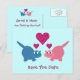 Save the Date Postkarten mit niedlich blauen & rosa Cartoon Katzen & Herz Illustration. Hintergrundfarbe & Text können durch Anklicken des Buttons "Anpassen" geändert werden - jede Menge Farben zur Auswahl. Wenn Sie Hilfe bei der Anpassung Ihres Produkts benötigen, kontaktieren Sie mich bitte über meinen Shop und ich werde Ihnen gerne weiterhelfen.