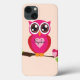 Mit einer niedlichen, gürmisch rosa Eule mit einem Liebe-Herz auf der Brust mit anpassbarem Text, um mit einem Namen auf einem hellrosa Hintergrund zu personalisieren.