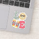 Niedlicher Vintager Laptop-Aufkleber mit Text, "Liebe" und einer lächelnden Sommersonne mit Sonnenbrille aus Leopardendruck und Sandflip-Flops mit Blume und Retro-Streifen