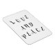 Niedliches Skript Schriftart Wörter Liebe und Ruhe auf einem schlichten Hintergrund.