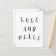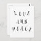 Niedliches Skript Schriftart Wörter Liebe und Ruhe auf einem schlichten Hintergrund.