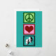 Schöne Theater- oder Drama-Clubkarte mit einem hübschen Friedenszeichen, Herz und den fröhlichen und traurigen Drama-Masken des Schauspiels. Peace Liebe Theaterkarten.