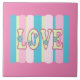 Niedliches Design des Wortes Liebe in den hellen Pastellfarben Honeysuckle Rosa, Zitrusgelb, sanft blau mit gestreiften Hintergrund fügt eine süße Touch zu jedem Zimmer hinzu. Akzente Kacheln können eine hübsche Ergänzung zu jeder Fliesenwand sein.