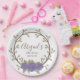 Diese Niedlichen Lila Blumengarten-Baby-Dusche-Teller sind einfach und die perfekte Lösung, um sich nach dem Betreiben einer Babydusche ohne Geschirr zu bereinigen. Drei violette Blumen schmücken den Boden des Ast-Kranzes. Die braune Typografie passt sich der Mutter und dem Party an. Mit passenden Papierservietten und anderen Accessoires für die Babydusche, um der Feier ein wenig mehr Farbe und Personalisierung zu verleihen.