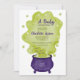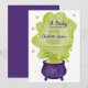 Ein Baby braut! Machen Sie sich auf ein nicht so unheimliches Halloween-Baby-Dusche-Party mit diesem bezaubernden und niedlichen lila Hexenkaldron und grünen Tränen und Blase laden mit niedlichen Halloween-Illustrationen ein. Perfekte Herbstdusche Halloween, geschlechtsneutrale Bucht.