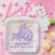 Lila und rosa Babydrache, die friedlich von Sternen umgeben ist und auf dieser niedlichen, anpassbaren Babydusche Papiertüte schlief. Ideal für eine drachenbezogene Babydusche oder eine fantasy-bezogene Babydusche für ein kleines Mädchen. Dieses skurrile Design wird Ihrem Dragon Baby Dusche Feier etwas Glanz verleihen!