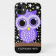 Niedliche lila gepunktete Eule kundenspezifische iPhone 4/4S Case-Mate-Hüllen und -geschenke für Eulenliebhaber, Vogelliebhaber und Vogelbeobachter. Eule mit sternenklare Nachthintergrund. Einzigartige, bunte und coole Eulengeschenke für Geburtstage, Weihnachten oder irgendeine Gelegenheit. Dieser Eulenentwurf ist in einigen verschiedenen Farben verfügbar! Sie können die Telefon-Hüllen personifizieren, indem Sie Ihren Namen addieren.