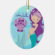 Feiern Sie die Urlaubssaison mit diesem personalisierten Meerjungschmuck. Der Hintergrund ist unter dem Meer. Beide Seiten sind identisch und haben eine süße lila Haarhaarmöwe mit einer großen lila Muschel. Personalisieren Sie mit einem Namen und dem Jahr oder Geburtsdatum. Ideal für Ihre kleine Diva bei Zuhause. Ideal, um in einem Baum, Mantel oder einem anderen speziellen Display zu hängen.