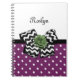 Zeigen Sie Ihren persönlichen Stil mit diesem niedlichen, lila-weißen Polka Dot-Notizbuch mit einem trendigen Schwarz-Weiß Zickzack Bogen und einer schicken grünen Band-Rose. Geben Sie diesem lila und grünen Retro trifft modernes Design eine personalisierte Touch, indem Sie den Namen Ihres Teenagers. Flachdruckbild, KEIN tatsächliches Rosettenband und Bogen.