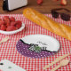 Niedliche Lila Punkte Grüne Rose Zickzack Bow mit Pappteller