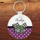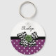 Zeigen Sie Ihren persönlichen Stil mit diesem niedlichen lila-weißen Polka Dot Schlüsselanhänger mit einem trendigen schwarz-weiß Zickzack Bogen und einer schicken grünen Band-Rose. Geben Sie diesem lila und grünen Retro trifft modernes Design eine personalisierte Touch, indem Sie den Namen Ihres Teenagers. Flachdruckbild, KEIN tatsächliches Rosettenband und Bogen.