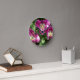 Niedliche lila Tulpen im Garten Runde Wanduhr