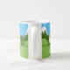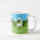 Diese Kaffee-Tasse verfügt über zwei niedliche weiße Lamas in den südamerikanischen Bergen. Der Text ist anpassbar.