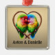 Feiern Sie das unzertrennliche Paar mit diesem Ornament, das ein KI-generiertes Paar farbenfroher Lovebirds in einem herzförmigen Teig kuschelt. Personalisieren mit Namen. Gut wie ein Valentinstag, Hochzeit oder Hochzeitstag Geschenk! Design © W.H. Sim. Weitere Informationen unter zazzle.com/word2art