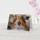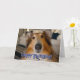Niedliche, lustige grobe Collie Grüße Karte. Auf der Vorderseite steht "Herzlichen Glückwunsch zum Geburtstag!" und im Text steht "Hoffe, dass du einen schönen Tag hast!".