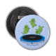 Niedliche, lustige grüne Bohnen auf Trampolin-Cart Flaschenöffner