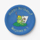 Niedliche, lustige, grüne Froschszene Cartoon-Abbi Pappteller