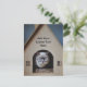 Auf der Postkarte befindet sich das Bild einer seriösen Katze, die eine schwarze Brille trägt, während sie von Haus aus nach draußen schaut. Fügen Sie benutzerdefinierten Text vor der Karte hinzu oder löschen Sie ihn.