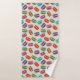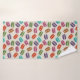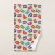 Ein Handtuch-Set mit einem niedlichen Makaronmuster in vielen verschiedenen Farben mit einem schwachen Polka-Punktmuster dahinter.