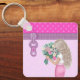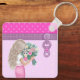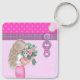 Niedliche Mädchen & Rosa Blume Elegantes Blumendes Schlüsselanhänger