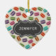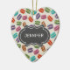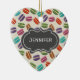 Ein personalisiertes Ornament mit einem niedlichen Makaronmuster in vielen verschiedenen Farben mit einem schwachen Polka-Punktmuster dahinter. Ein extravaganter, Vintag aussehender, schwarz-weißer Zierrahmen mit dem Text im Inneren.