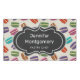 Namensschild mit einem niedlichen Makaronmuster in vielen verschiedenen Farben mit einem schwachen Polka-Punktmuster dahinter. Ein extravaganter, Vintag aussehender, schwarz-weißer Zierrahmen mit dem Text im Inneren.
