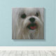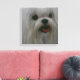 Niedlicher, weißer Maltesehund mit seiner kleinen Zunge.