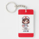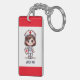 Dieser Schlüsselanhänger für Krankenschwestern verfügt über eine niedliche Krankenschwester im Stil der Manga chibi mit blondem Haar und blauen Augen mit einem Namen, um die personifizierte und rote Grenze. Ideal für Krankenschwestern oder Krankenpfleger. Bild generiert mit KI.