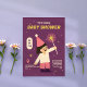 Feiern Sie die Ankunft eines kleinen mit dieser skurrilen und niedlichen Märchendusche. Mit einem magischen Zauberstab, einem illustrierten Charakter und einem lila Hintergrund mit Sternen, ist diese Einladung perfekt für eine fröhliche, lustige Babydusche. Personalisieren Sie den Namen, das Datum, die Uhrzeit und die Adresse, um eine einzigartige Einladung Ihre Gäste zu erschaffen wird! Perfekt für: Baby Duschen für Mädchen Whimsical und magische Themen Fee Märchen Liebhaber Spielerisch und jugendliche Feiern