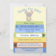 Eine themenorientierte Babypartyeinladung des Jungen mit holen ein Buch für Babybibliotheksthema. Ursprünglicher Entwurf durch die Menagerie der Nachteule, 2019.