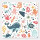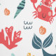Niedliche Meereskreaturen Schildkrötenwale Kids Mustertapete zeigt niedliche und farbenfrohe Weißfische, Tintenfische, Wale, Schildkröten, Seepferde, Krabben, Seesterne und Algen in blau, orange, rot und rosa auf weißem Hintergrund. Ideal für Kinder-Schlafzimmer, Kinderzimmer-Dekoration, Spielzimmer, Wohngestaltung, Büro und Party Dekoration. Erstellt von Evco Studio www.zazzle.com/store/evcostudio