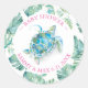 Fügen Sie Ihrer Babydusche niedlich tropisch mit meinem schicken Siegel der Insel hinzu. Diese 1,5" Aufkleber zeigen meine originale Aquarellschildkröte, umgeben von tropischen Monstera-Palmen-Blätter in Blau, Türkis und Grün. Personalisieren Sie mit den Namen und dem Duschdatum. Bearbeiten Sie die Wörter, um Dankeschön zu lesen, und verwenden Sie als Gunst-Aufkleber. Weitere Informationen zu passenden Bürogeräten finden Sie unter www.zazzle.com/dotellabelle