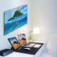 Digitale Kunst einer Meeresschildkröte, die im Sommer vor einer tropischen Insel im Meer schwimmt. Inspiriert von der Schönheit des tropischen Ozeans und des marinen Lebens, wird dieses Kunstwerk Ihnen helfen, an Ihren Traumurlaub im tropischen Paradies zu erinnern.