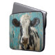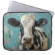 Schützen Sie Ihr Gerät mit rustikalem Charme mit unserer Niedlichen Milchkuh Bauernhof Malerei Laptop Schläfchen. Mit einer bezaubernden Milchkuh und einem abgenutzten, blau gestrichenen Holzboden kombiniert dieser Ärmel die Ästhetik eines Bauernhauses mit praktischem Schutz, perfekt für Liebhaber von Landdekoration und Pastoralszenen.