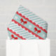 Weihnachtspapier mit Streifen, Bändern und Sternen.