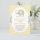Niedliche moderne Gelbgraue Elefantengeschlecht - Neutrale Babydusche Einladung | Einladung zur Zickzack Babydusche