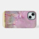Niedlich Modern Girly Pink Butterfly Fairies iPhone 15 Hüllen. Dieses moderne Design besticht durch eine trendige rosa Fee, die einer jüngeren Fee einen Schmetterling auf einer Wiese von Blume schenkt. Ideal für Mädchen zum Geburtstag, Weihnachten, Feiertage und vieles mehr. Erstellt von Evco Studio www.zazzle.com/store/evcostudio