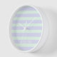 NewParkLane - Einfache, aber niedliche, personalisierte Uhr, mit einem modernen Muster aus breiten Pastellfarben / Minzgrün und Lavendelstreifen. Fügen Sie Ihren Namen für ein personalisiertes Design hinzu.