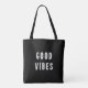Weißer Text "Good Vibes" auf einem texturierten schwarzen Farbhintergrund. Andere Farben und Produkte in meinem Geschäft erhältlich.