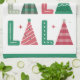 Ein niedliches, skurriles und modernes Küchenhandtuch mit den Worten FA LA LA LA LA LA LA in handgezeichnet Stil. Die As werden durch Weihnachtsbäume repräsentiert.