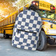 Niedliche Monogramm-Initialen und Blue Checkerboar Bedruckter Rucksack