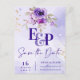 Niedliche Monogramm Lila Blumenzehen speichern Sie das Datum Postkarteneinladung . Versenden Sie diese lila, blühende Hochzeit Retten Sie das Datum magnetische Einladung an Familie und Freunde. Eine perfekte Art, Ihre Hochzeit anzukündigen. Kann vollständig angepasst werden, indem Sie die Namen der Braut und Bräuche , Hochzeitstag .