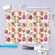Niedliches, farbiges, handgezeichnetes und digital gestaltetes Papiertaschentuch, auf weißem Untergrund mit Muffins, Croissants und Zimtrollen.