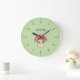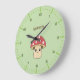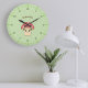 Eine grüne Wanduhr mit Zahlen, eine Abbildung eines niedlichen Pilzes im Cartoon-Stil anpassbarer Text unten! Das ist eine tolle Möglichkeit, das Zimmer eines Kindes lustig zu machen!