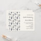 Hochzeitseinladung mit musikalischem Themendesign. Ein Muster mit Treppenschnitt, Basskleber und anderen musikalischen Symbolen.