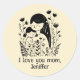 Niedliche Mutter und Tochter umarmt Muttertaggelb Runder Aufkleber