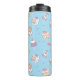 Ein Gekritzelmuster bilden von den populären Nachtischen wie Erdbeerkuchen, macaron, Regenbogenkuchen, kleiner Kuchen, Schweizer Rolle, Schokoladenball, Eistüte. Unter den Nachtischen ist ein Raketenschiff und der Otterastronaut, der im Regenbogen fest ist, besprüht Krapfen. Süße Pastellfarbe perfekt für jemand mit einem süßen Zahn!