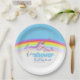 Rainbow Baby Dusche Teller, mit einem niedlichen whimsical Narwhal Aquarell Malerei. Persönliche Betreuung Ihrer Babydusche mit Namen und Datum. Weitere passende Artikel sind verfügbar. Einzigartige Aquarellkunst und Design von Sarah Trett für www.mylittleeden.com
